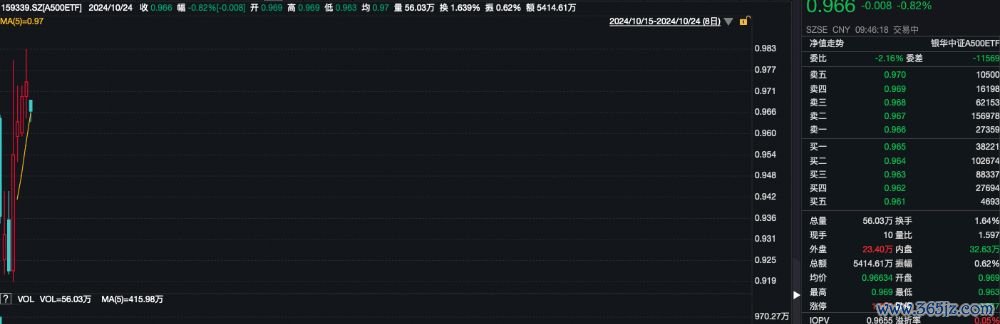 相关ETF方面,A500ETF(159339)截至发稿跌0.82%,成交额超5400万元,换手率1.64%,早盘交投活跃,溢折率0.05%,盘中频现溢价交易。