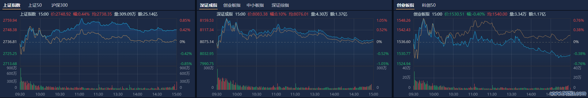 9月23日,市场全天冲高回落,沪指录得四连阳,创业板指收跌。南财金融终端显示,截至收盘,沪指涨0.44%,深成指涨0.1%,创业板指跌0.4%。